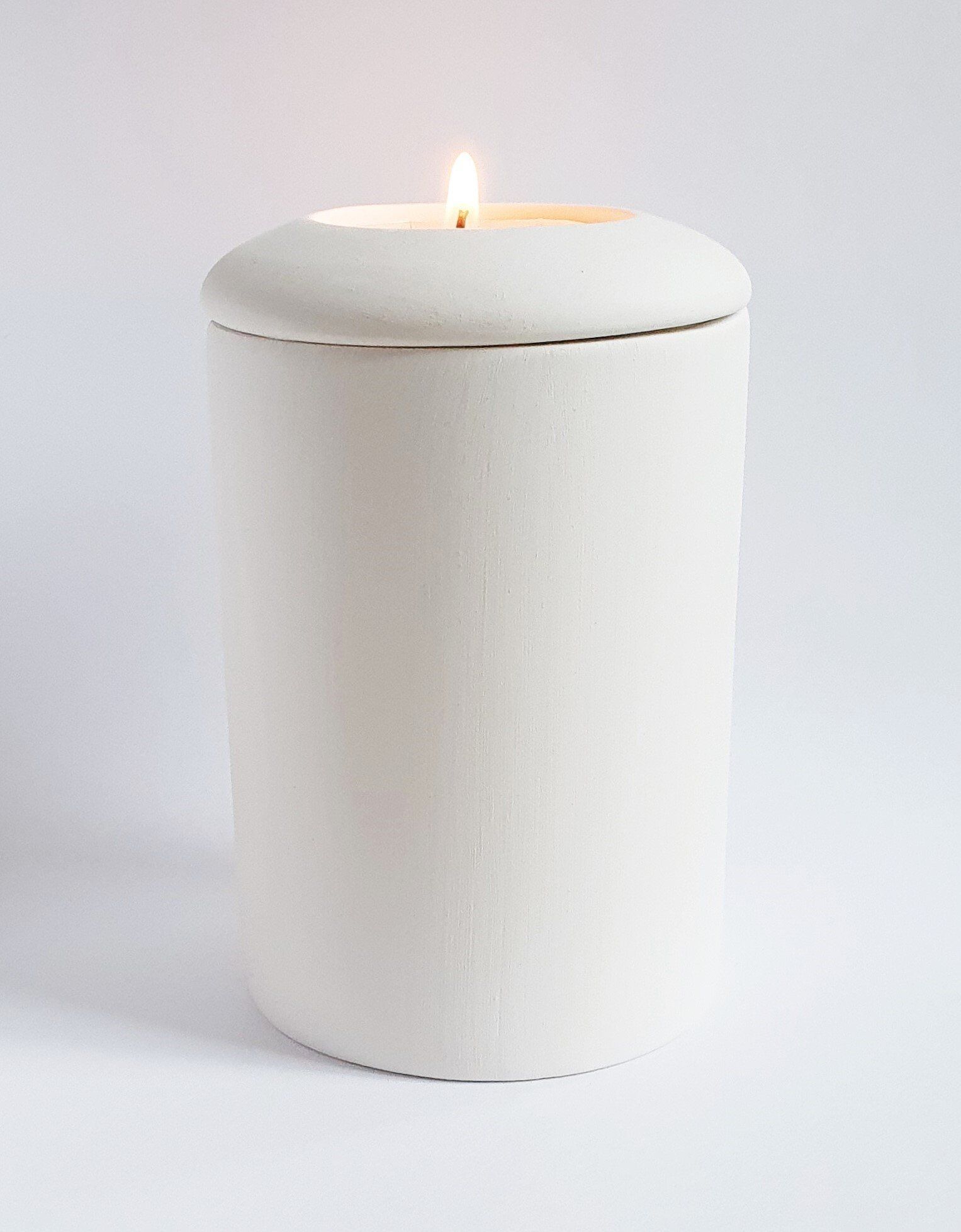 Alle formaten zijn naar keuze leverbaar met een waxinelichtje bovenin, of met een vlakke deksel.