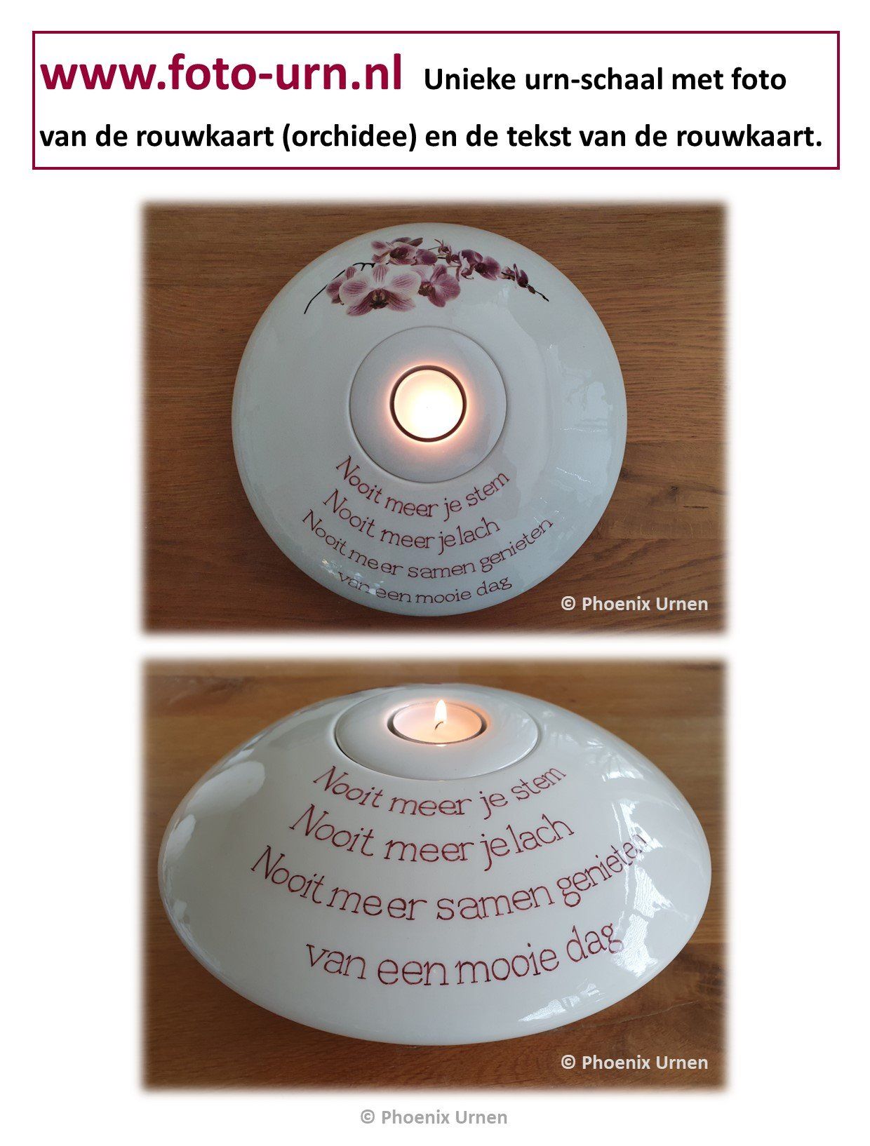 Wat is er nu mooier dan een foto van een mooie familie-herinnering? Of een foto van uw eigen huisdier, waarmee u vele mooie momenten heeft beleefd? Het is nu mogelijk om zo'n bijzondere foto via een speciaal procedé in te branden in de glazuur van een urn. Je kunt kiezen uit één foto, maar ook meerdere foto's gecombineerd is mogelijk. Zelfs de combinatie van een foto op de urn met een hand beschilderde decoratie behoort tot de mogelijkheden.